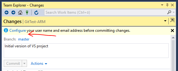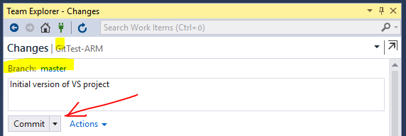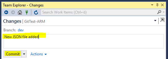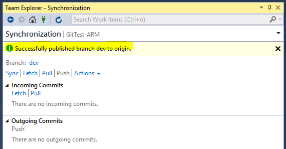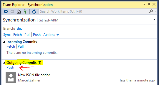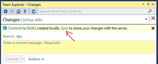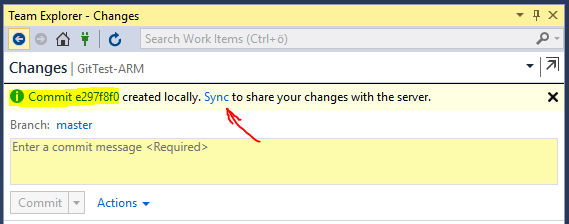 Now I change back to “Team Explorer – Changes” and click on the “Sync” link.