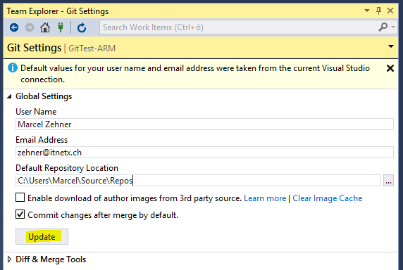 If this is your first use of Git, you possibly are forced to enter some personal details. This information is used in the source control system when your work will be commited.