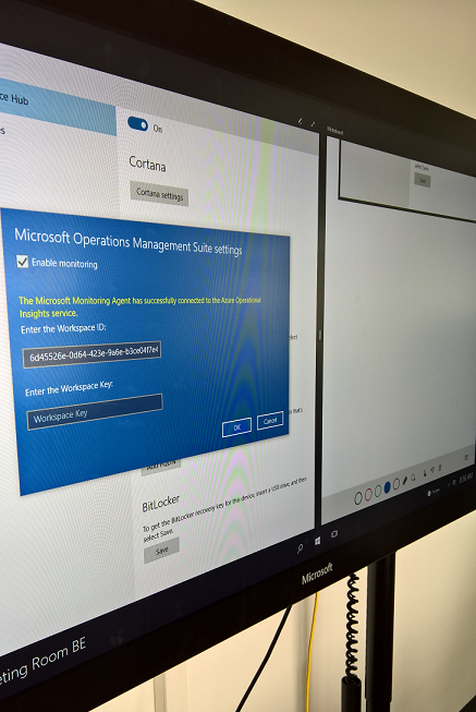 The Surface Hub is delivered with a preinstalled Microsoft Monitoring Agent. The only thing that needs to be done is connecting it to the appropriate OMS workspace. This can easily be accomplished by using the system settings and by entering your workspace id and workspace key. After a while, data will be collected and forwarded to Azure Log Analytics.