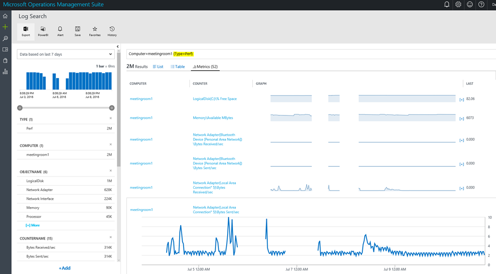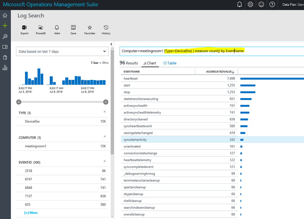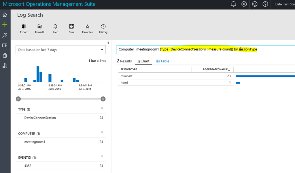 Normally the information accessible from the solution views should be enough. However, you can dig deeper into the collected data. In the Log Search area you can see different data types collected for Surface Hub devices: