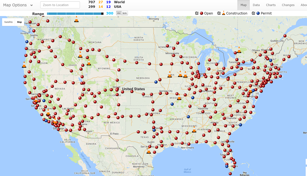 First I need to collect the Tesla Supercharger data somewhere. The website supercharge.info has a full list of Tesla Superchargers that exist on the planet with all the needed details.