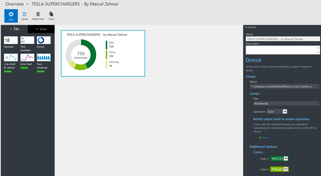 Now switch over to the view configuration and add the view types needed. In my case I wanted to display the Tesla Superchargers in my country and display the stall count. Plus I wanted to have a second view with Superchargers that are planned or already under construction.
