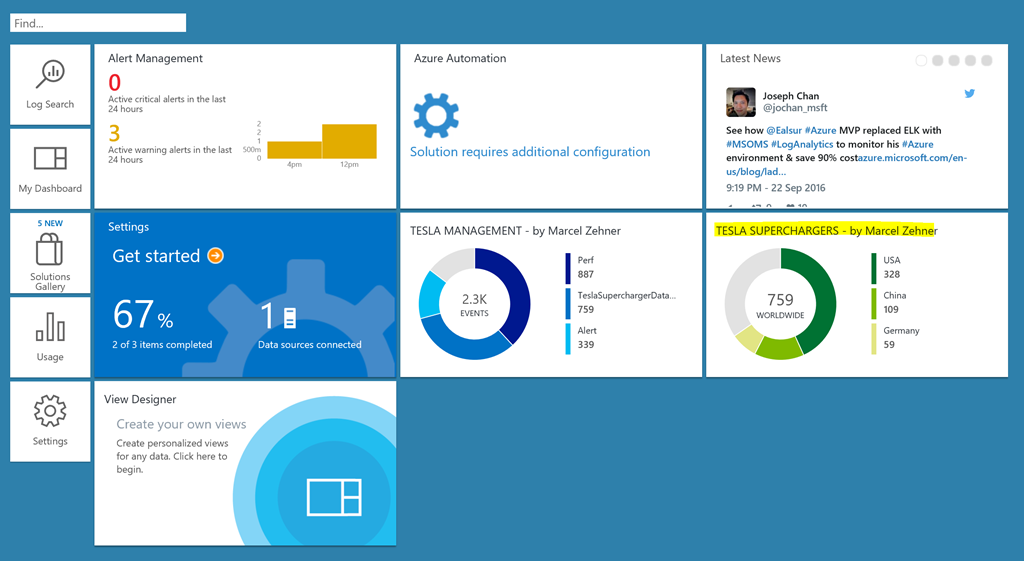 Now, Tesla is heavily investing in their Supercharger infrastructure, which means that data will change constantly. So how can we make sure that we have the current data available in OMS at all time? One way to go is to use log analytic alerts together with Azure Automation.