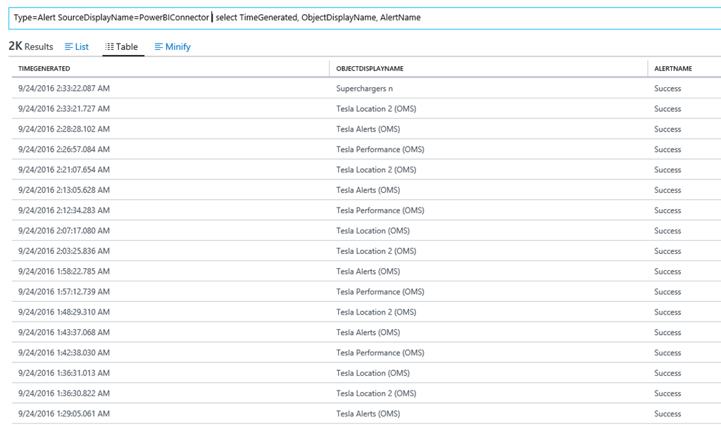 Type=Alert SourceDisplayName=PowerBIConnector | select TimeGenerated, ObjectDisplayName, AlertName