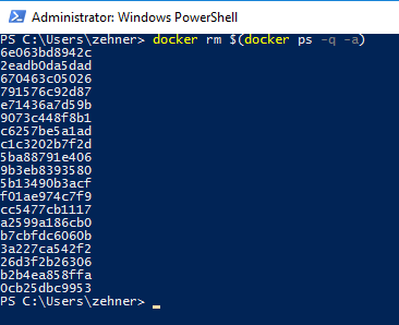 The same procedure can be used to remove the containers. Don’t forget to include the –a option to make the command get all containers that are either started or stopped.
