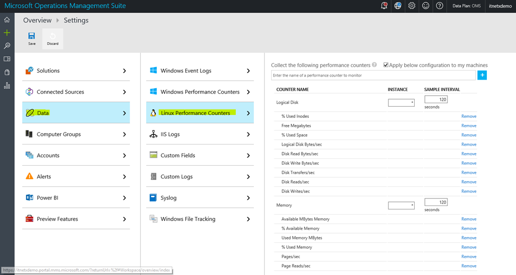 If needed, specific data collection can be configured in the OMS configuration for Linux Agents.