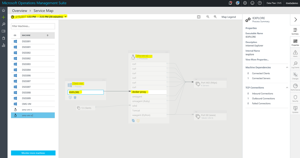 Now navigate to the Service Map solution. This solution gives you important insights about communication patterns within your infrastructure.