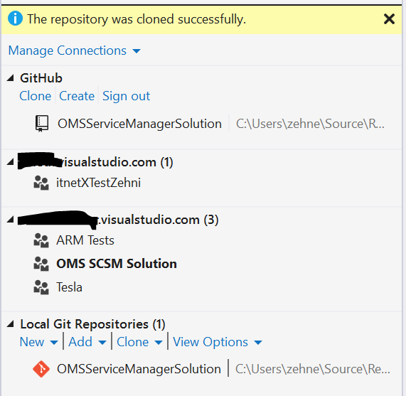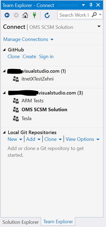 Once the add-on is installed, you shoud see a new “Github” area in the Team Explorer.