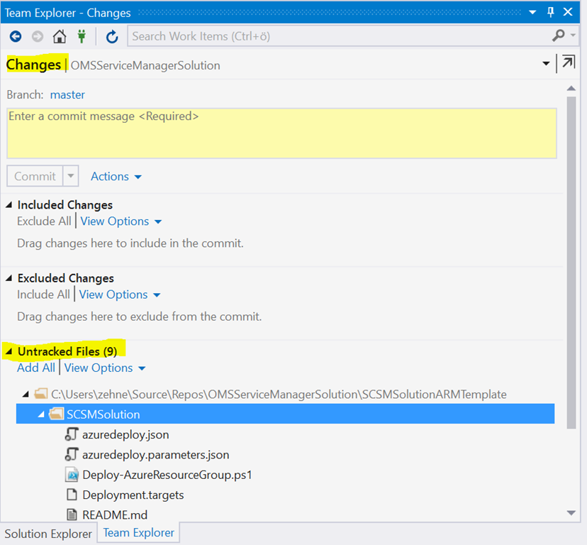 You should now see that the files are source controlled. If you modify a file or add a new one the lock disappears to let you know it’s not yet pushed.