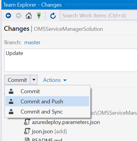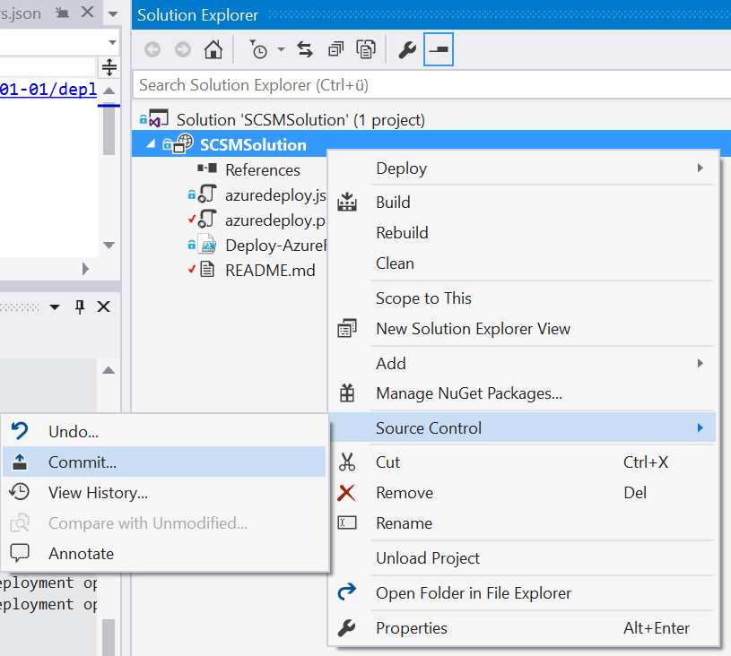 Files/folders can also be commited directly from the Solution Explorer.