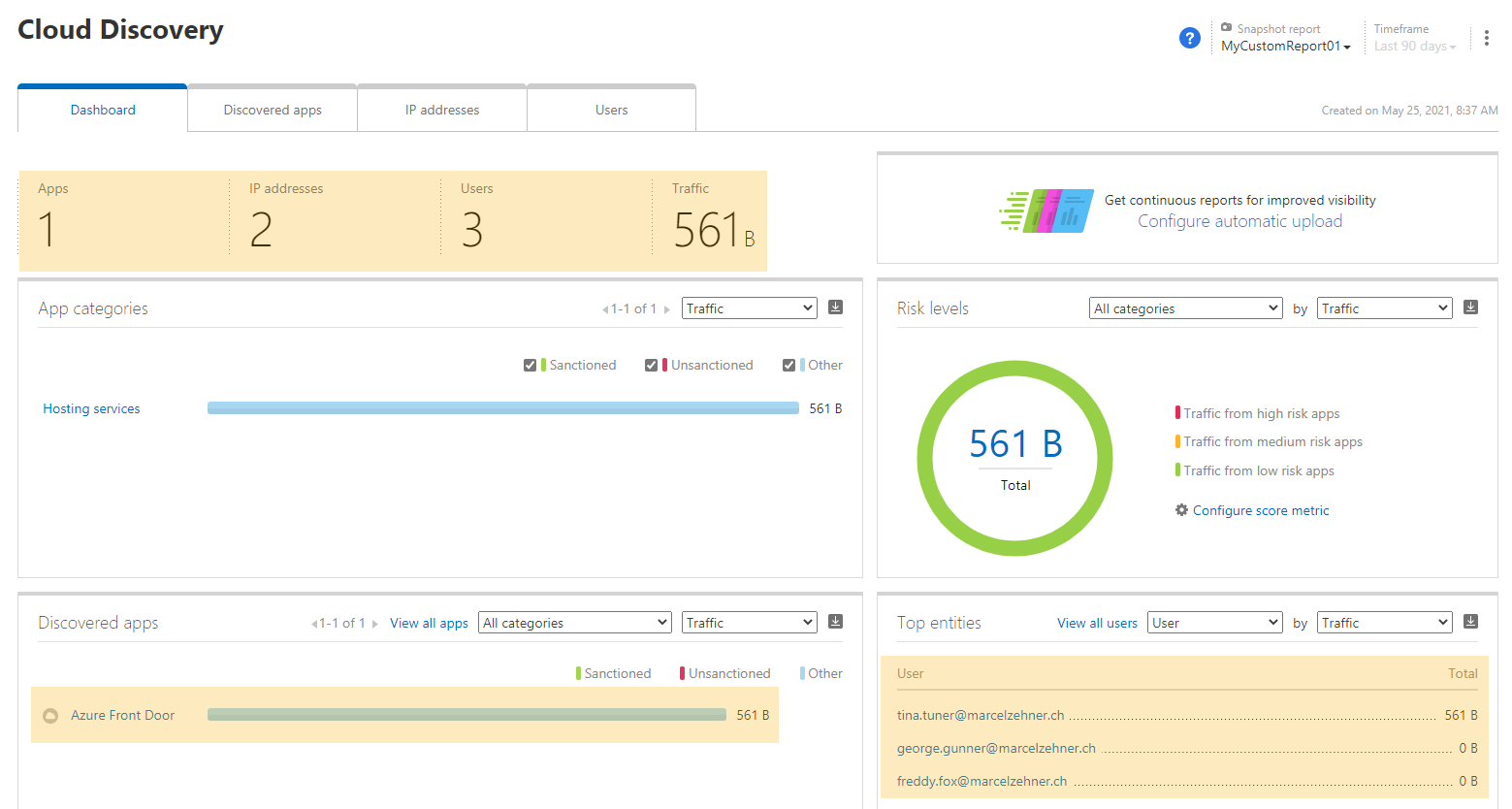 As you can see, all data from the log file has been visualized. The destination IP addresses have been translated from the MCAS app catalog to understandable application names (Azure Front Door). And with that we are done!